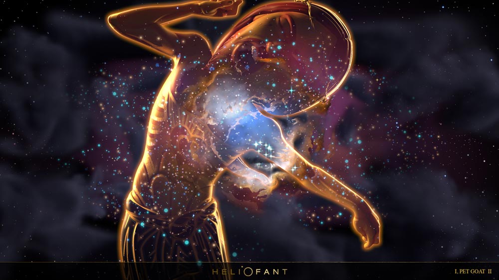 Heliofant, Montreal/Kanada’da bulunan bağımsız bir animasyon stüdyosu. Kendinlerini müzik, dans, görsel sanatlar ve bilgisayar animasyonu dalında sanatçıları bir araya getirerek, deneysel işler yapmaya adamışlar ve bu anlamda verdikleri ilk iş “I, pet, goat II”. Geçtiğimiz dönemlere damgalasını vuran küresel olayları değişik bir bakış açısıyla sergiliyor.