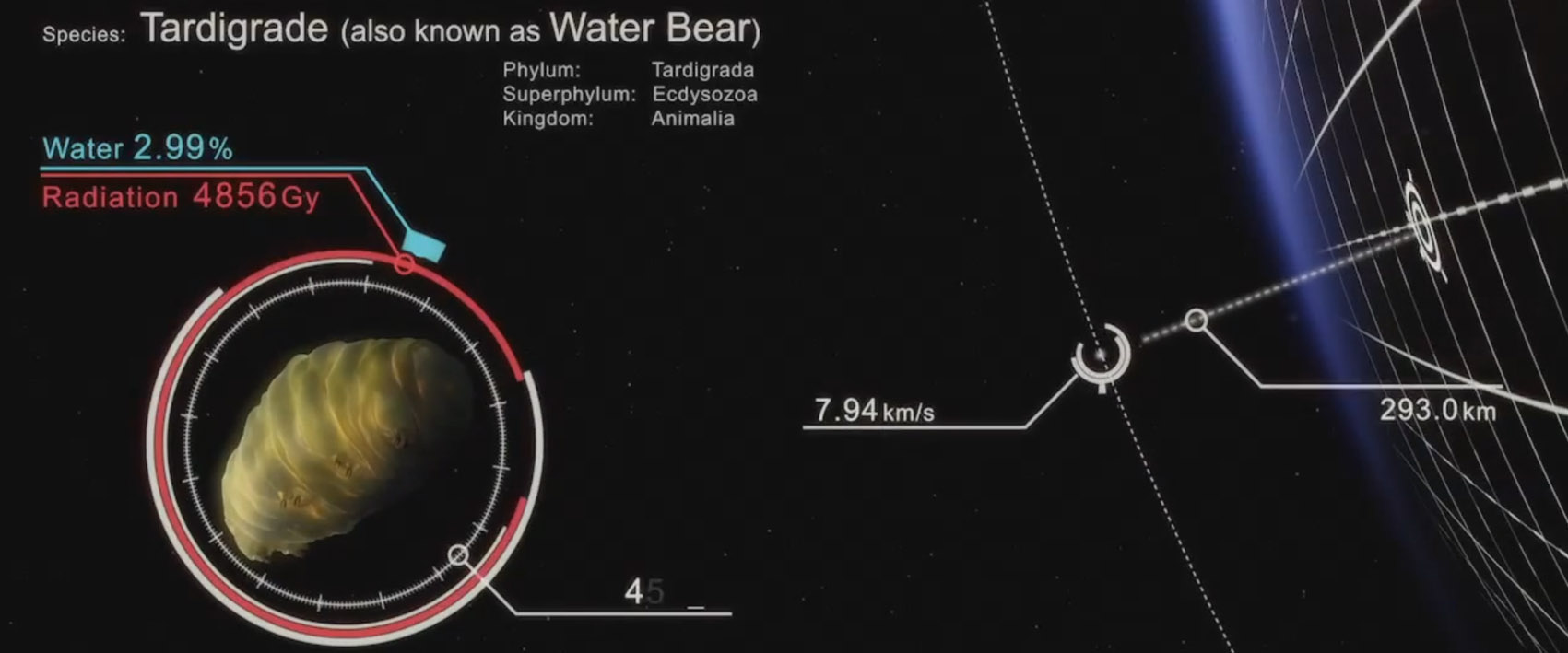 Tardigradia (Su ayıları – yavaşadımlılar) Mikroskobik canlı olan omurgasız bu hayvanların olağanüstü koşullara dayanıklı olduğu bilinmektedir, önce tatlı suda ortaya çıkan tardigrade’in yüksek adaptasyon becerisiyle toprak üzerinde ve Uzayda yaşayabildiği keşfedilmiştir. Bu küçük canlıyı konu alan kısa film, görsel efekt ve dijital sanat stüdyosu olan Industrial Motion Art tarafından yapılmıştır.